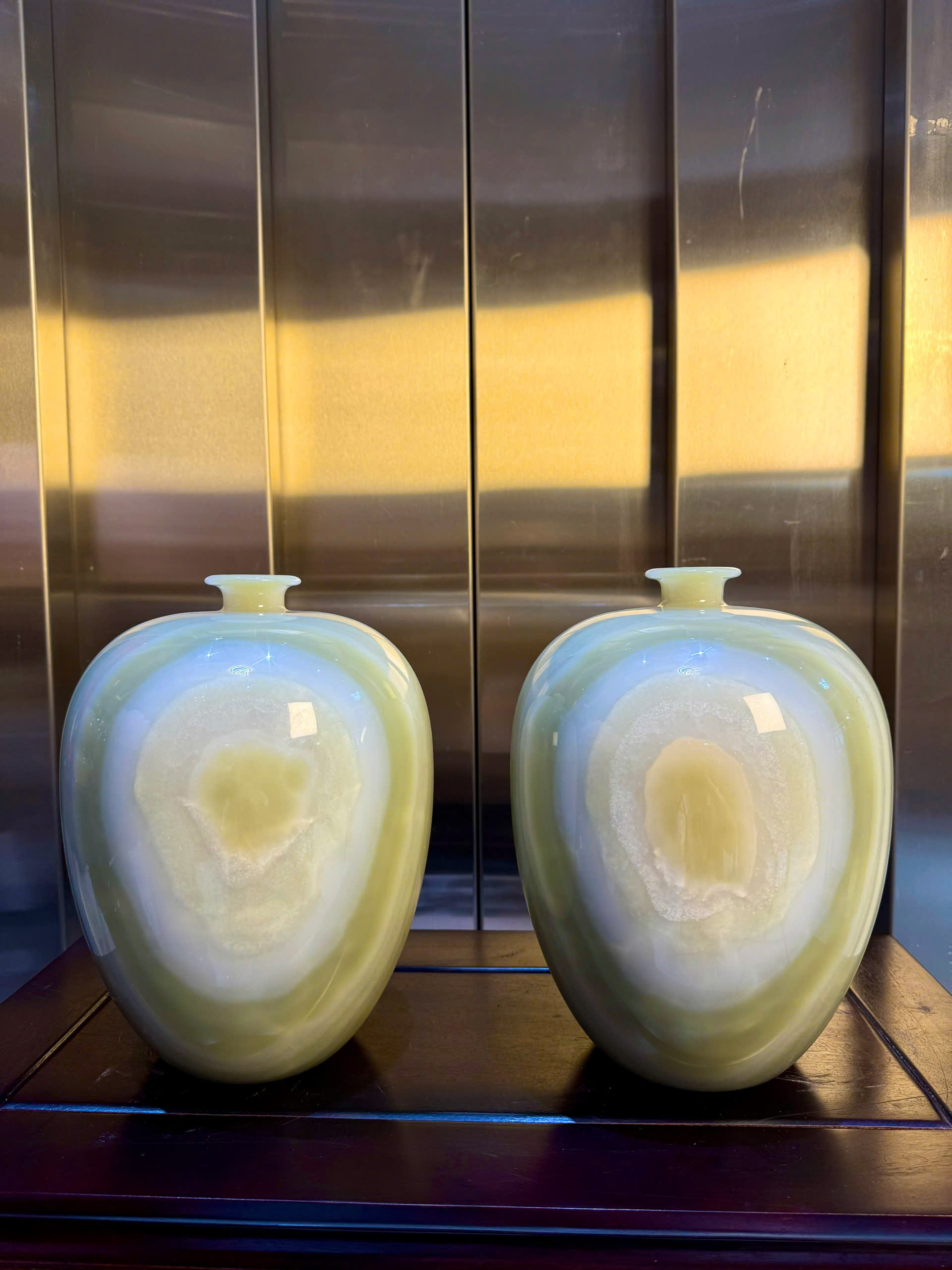 Cặp Lộc Bình Ngọc Onyx Tài Lộc Trắng Xanh – Vân Nhãn Độc Đáo, Phú Quý Vượng Khí